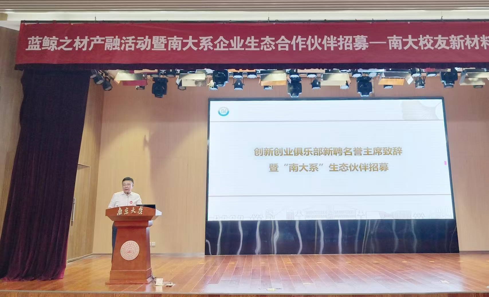 9月26日下午,在南京大學化學化工學院報告廳舉行了“藍鯨之材產融活動暨南大系企業生態合作伙伴招募-南大校友新材料項目和成果轉化交流會”,江蘇中旗科技股份有限公司董事長吳耀軍被聘為“南京大學校友總會南京校友會創新創業俱樂部”名譽主席。吳總致辭并隆重發布中旗科技的產業化需求,招募生態合作伙伴。